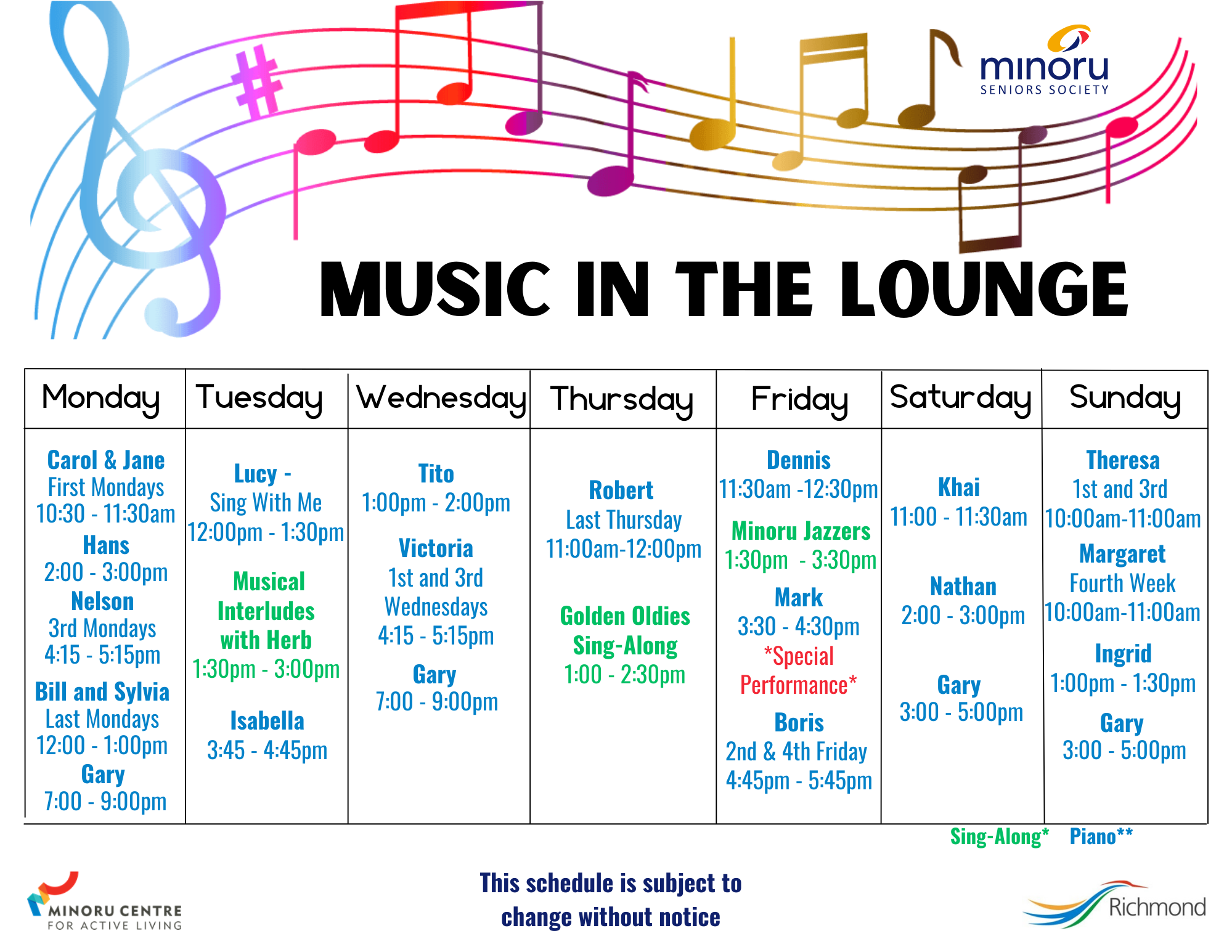 Music in the Lounge schedule